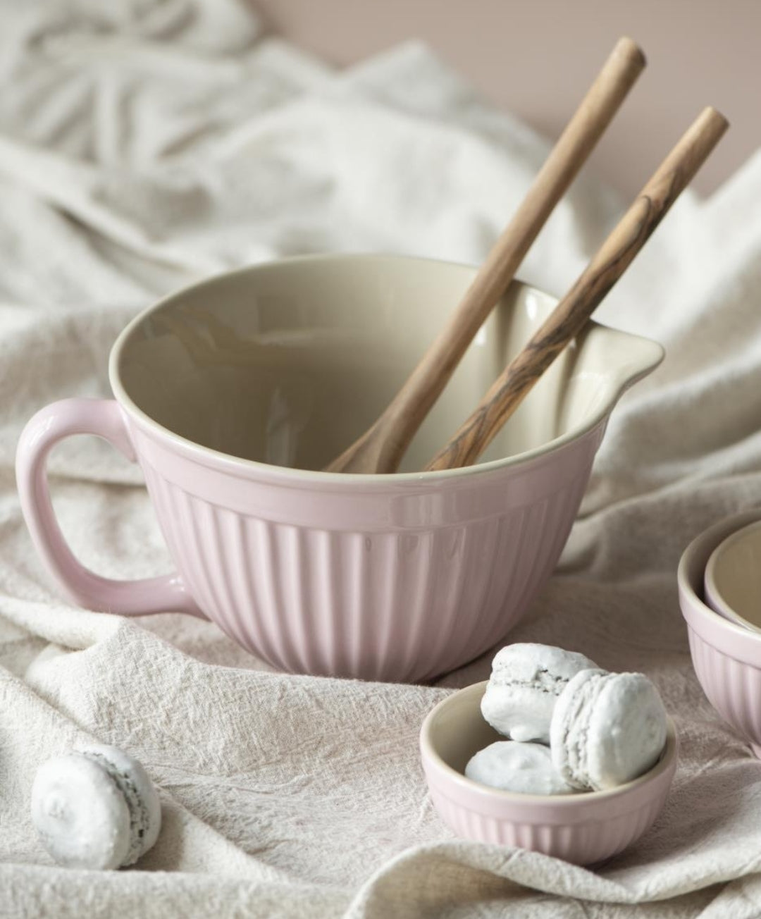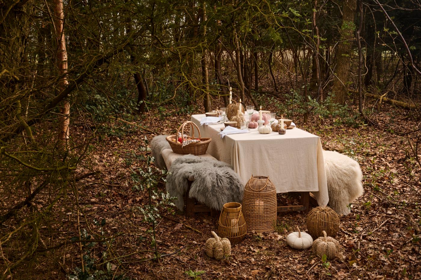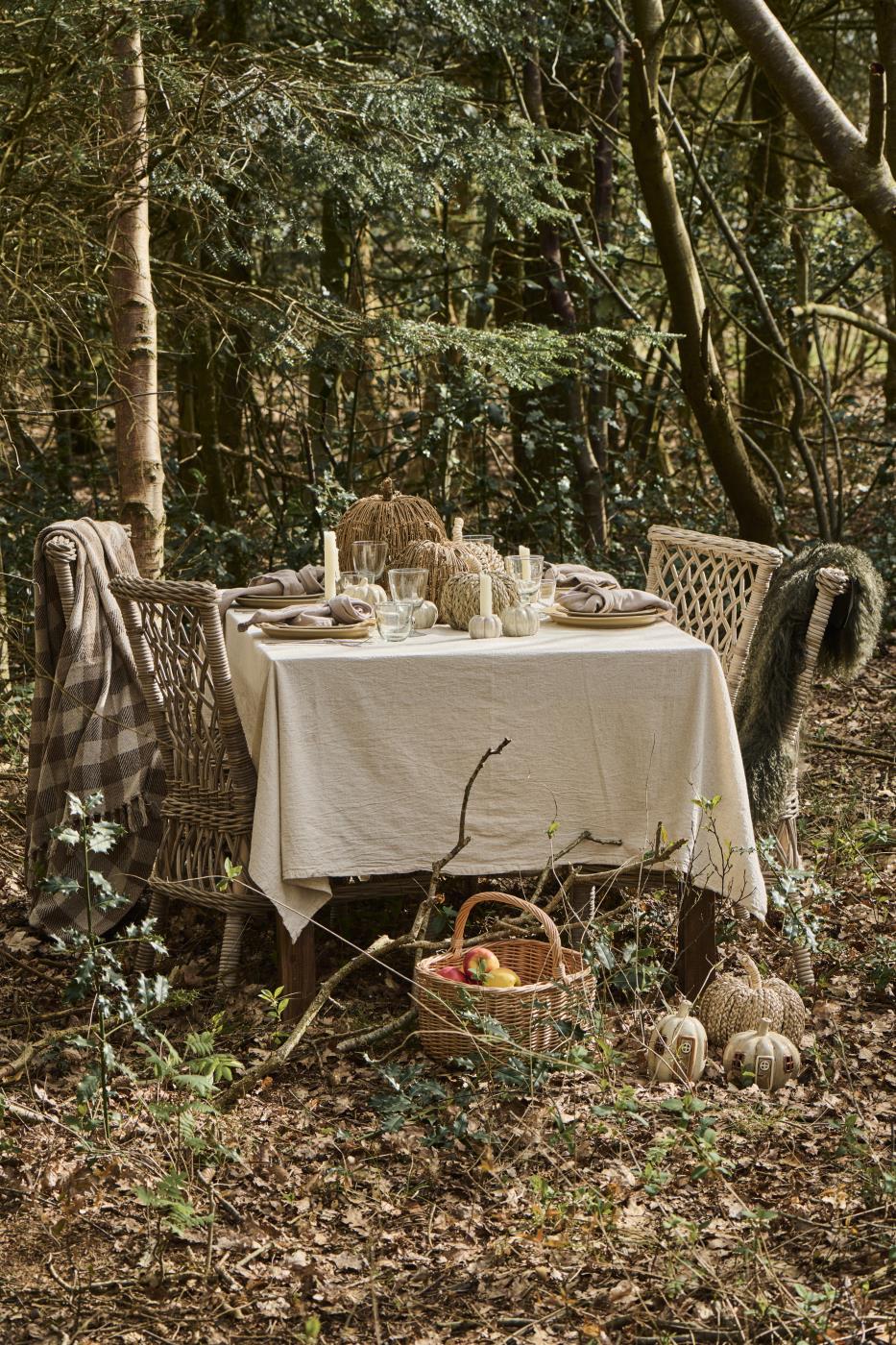 Den neutrale farve gør det nemt at style med både lyse og mørke nuancer, og den giver borddækningen et strejf af landlig elegance.