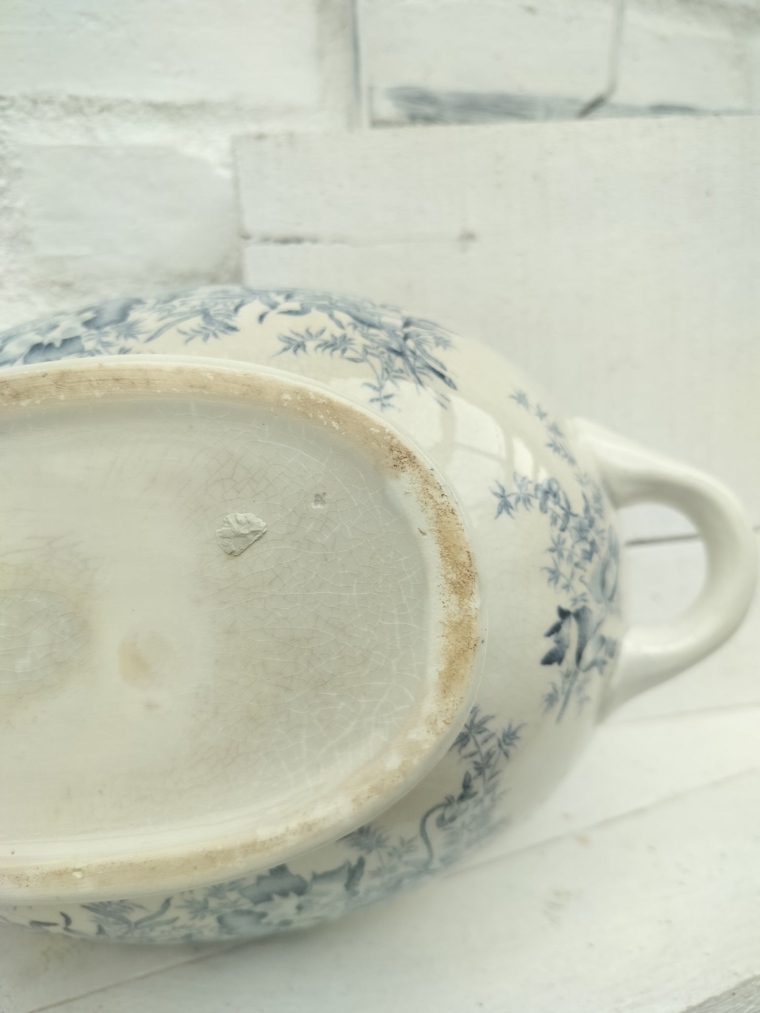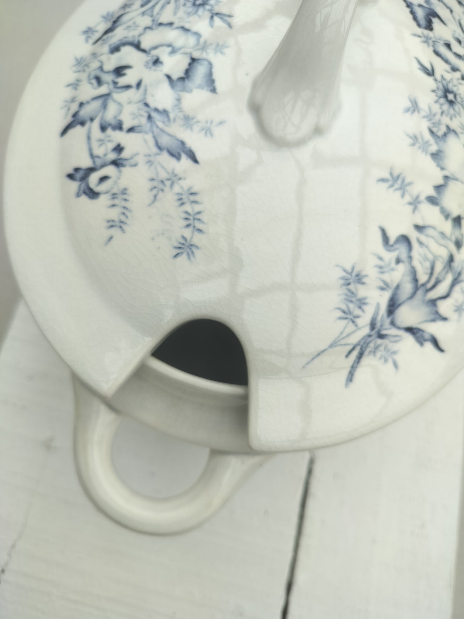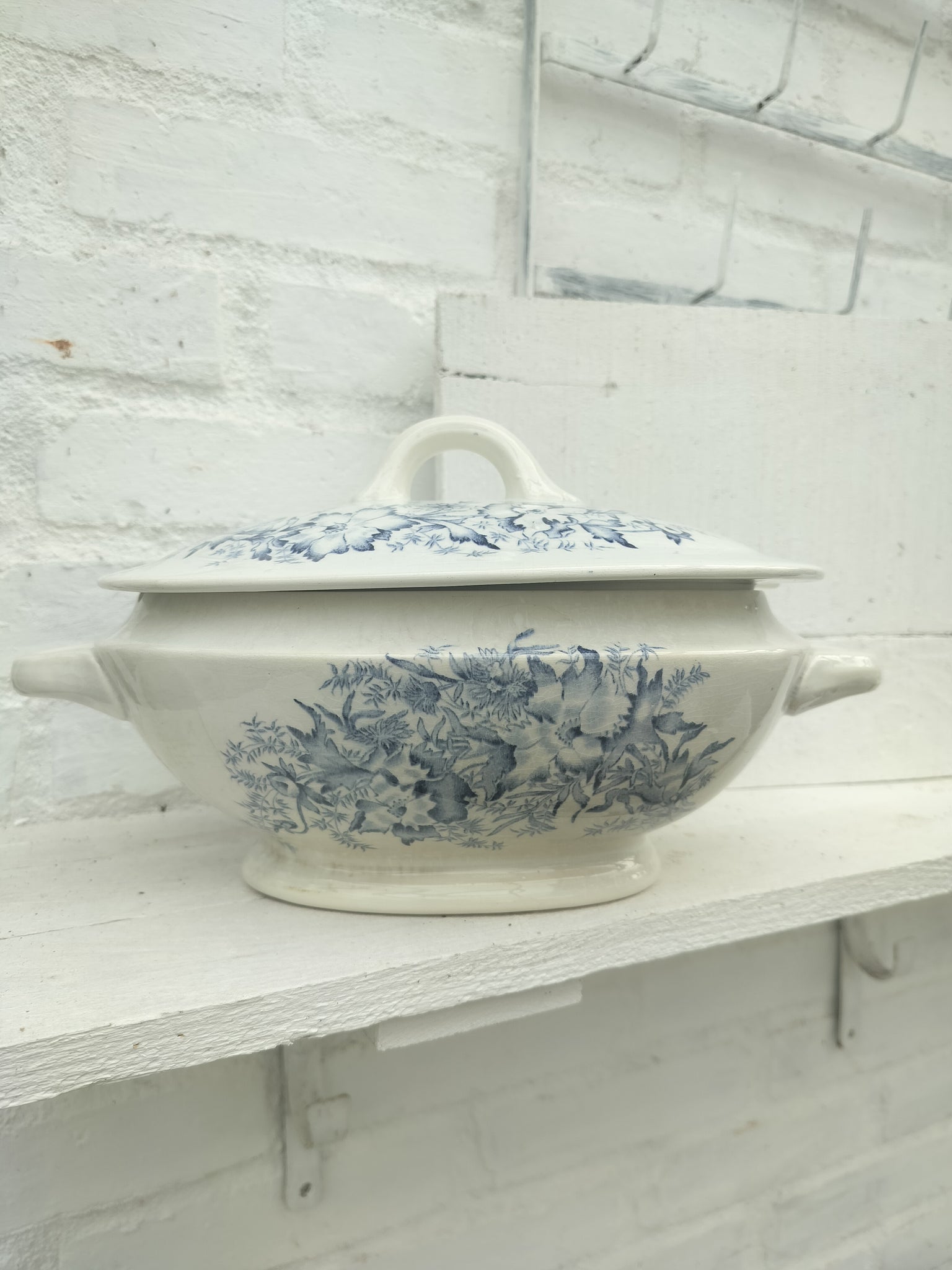 En gammel terrin kan bruges til meget mere end bare servering – den er et smukt stykke nostalgi, der kan pryde dit hjem på mange måder. Brug den klassisk til supper og gryderetter, fyld den med blomster som en anderledes vase, eller lad den stå fremme alene som et dekorativt blikfang.