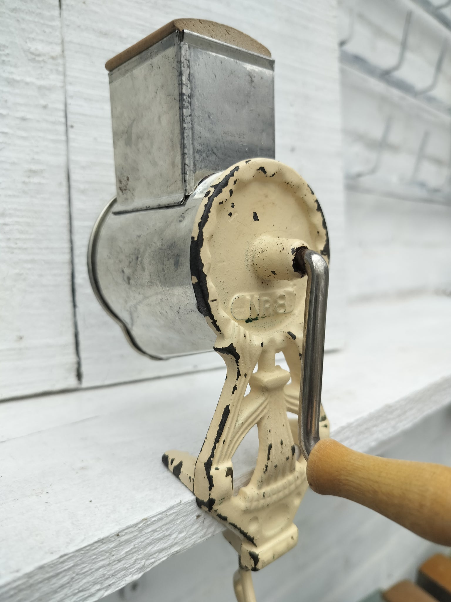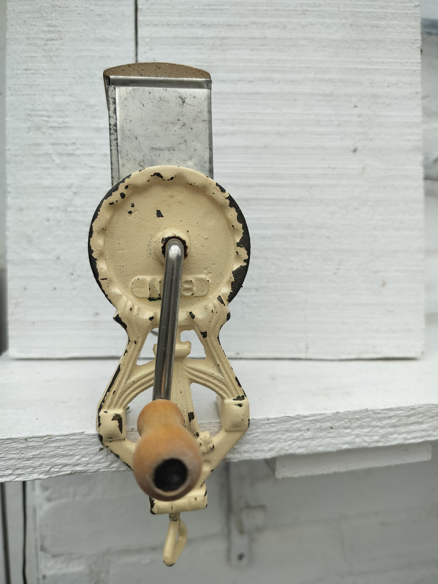 Der er noget særligt ved de gamle mandelhakkere. De er skabt til at holde, med solidt metal, godt greb og et håndsving, der gør arbejdet langsomt og roligt.
