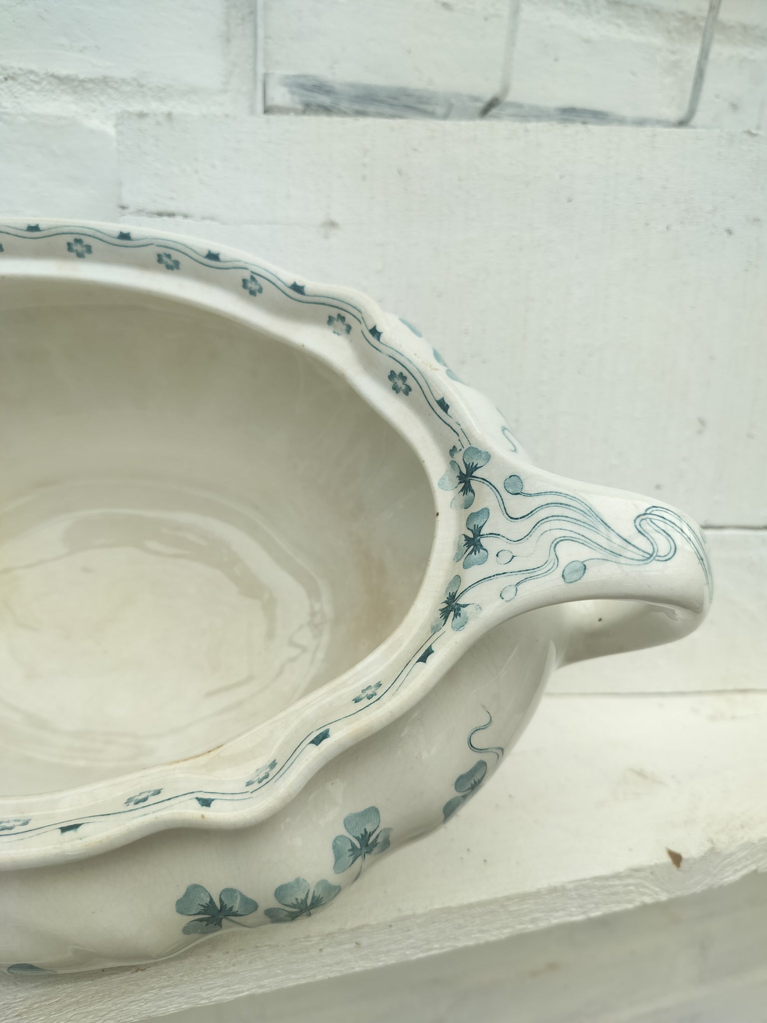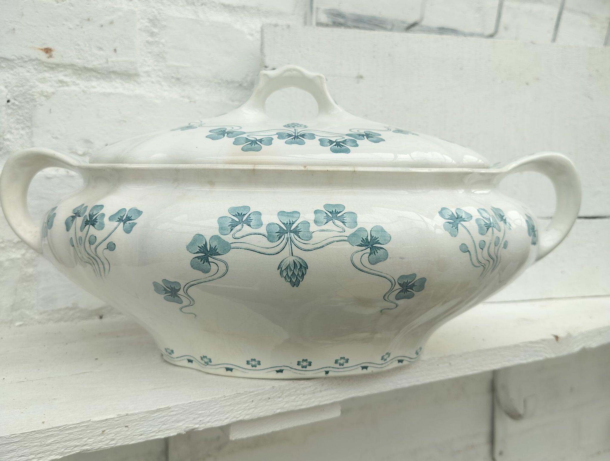 En gammel terrin kan bruges til meget mere end bare servering – den er et smukt stykke nostalgi, der kan pryde dit hjem på mange måder. Brug den klassisk til supper og gryderetter, fyld den med blomster som en anderledes vase, eller lad den stå fremme alene som et dekorativt blikfang.