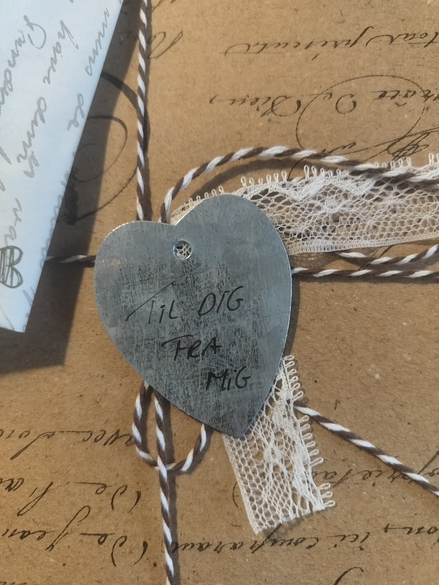 Fine små hjerter i metal med hul til snor – en enkel og charmerende detalje, der kan bruges på mange måder. Bind dem på en gave som et personligt til og fra-mærke, skriv en lille hilsen eller et navn på dem, eller brug dem som pynt på en gren, krans eller serviet.